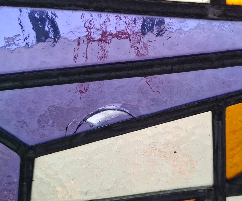 Een paars glaasje in het centrum is gebroken: vervangend glas in de juiste kleur is inmiddels aanwezig.
