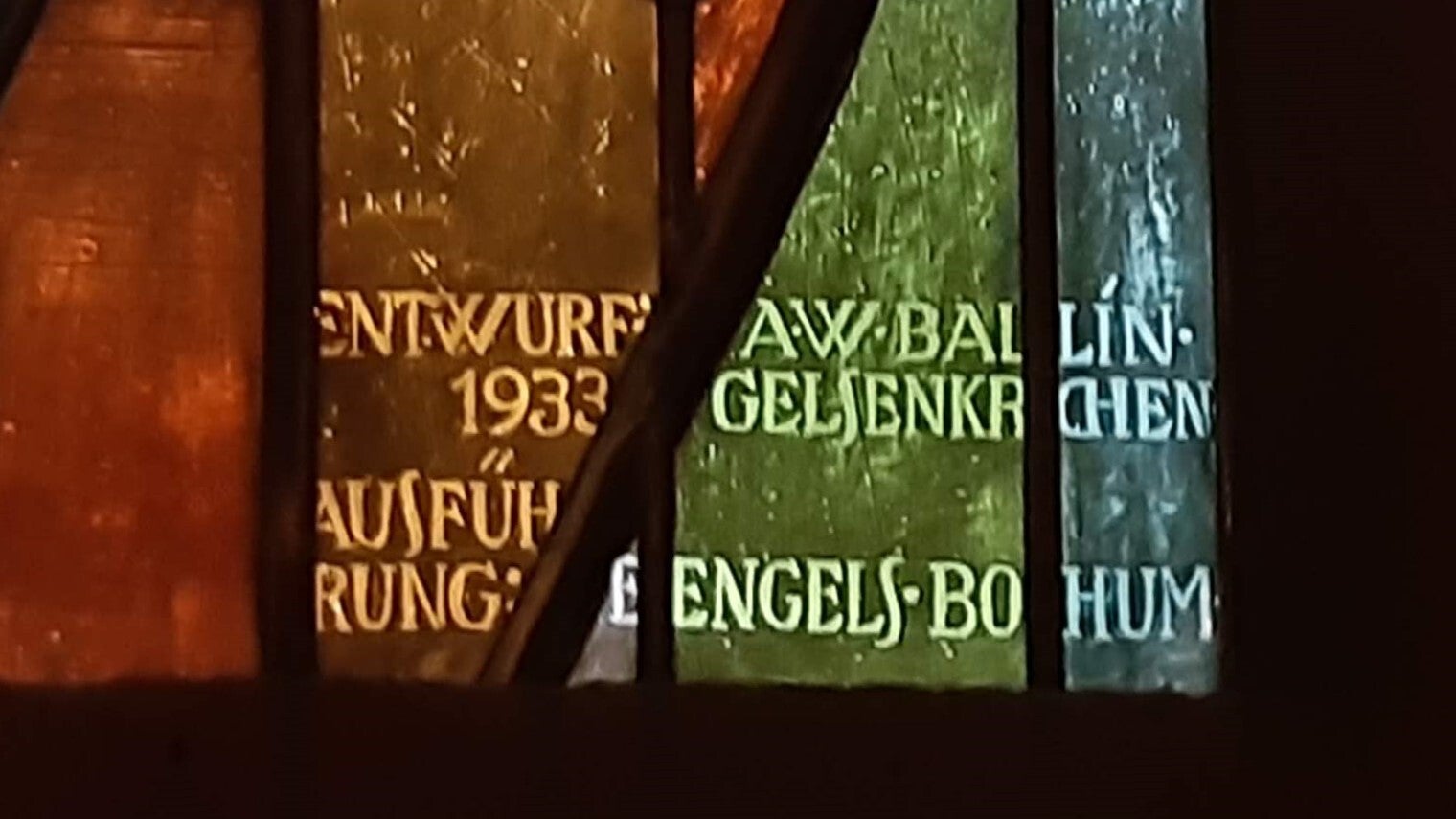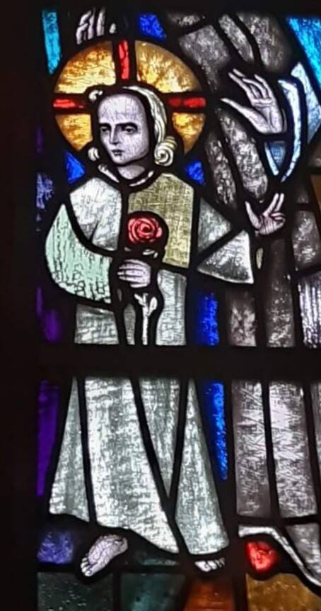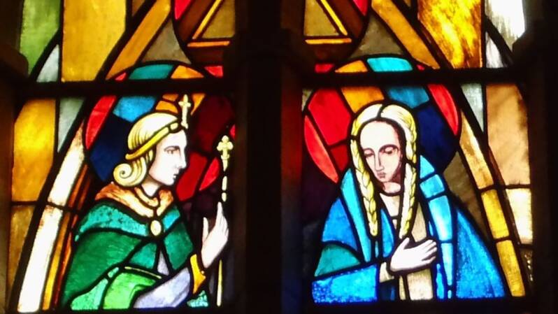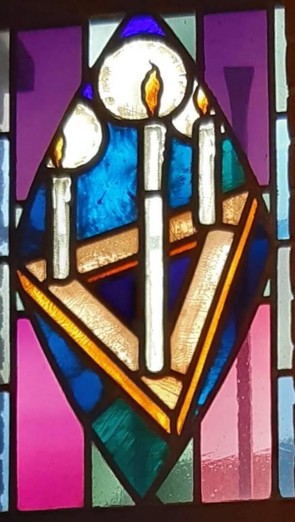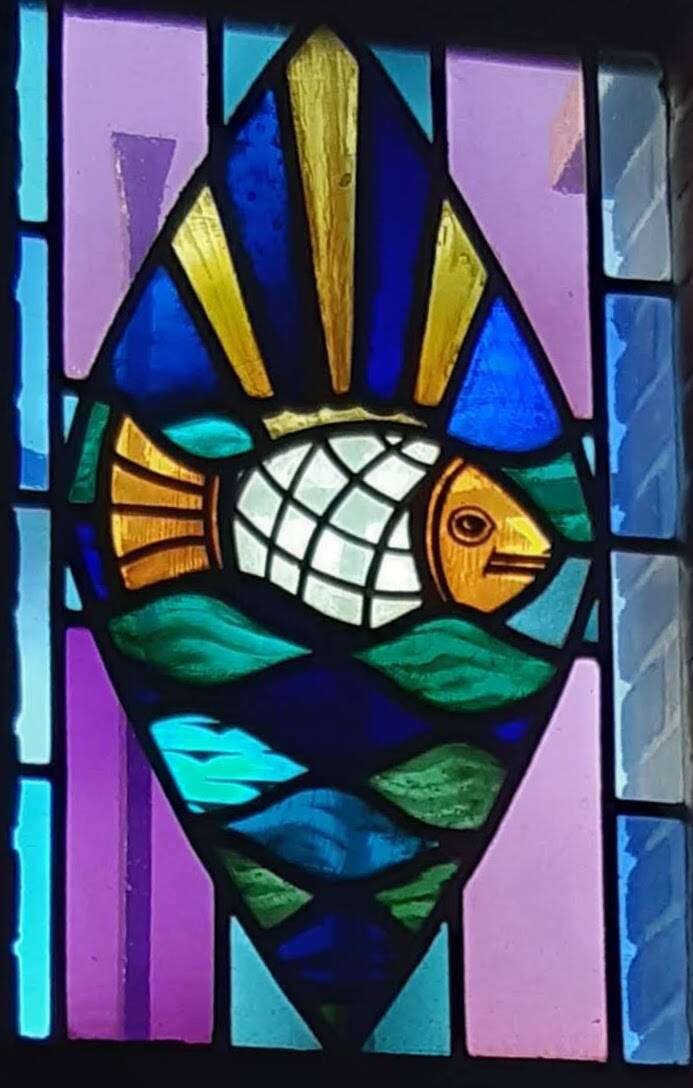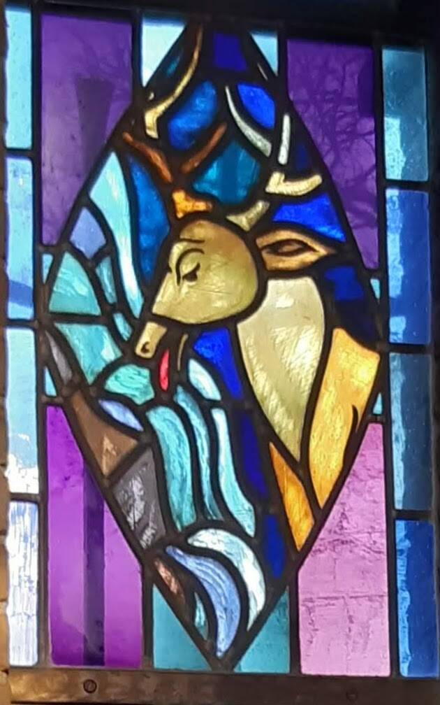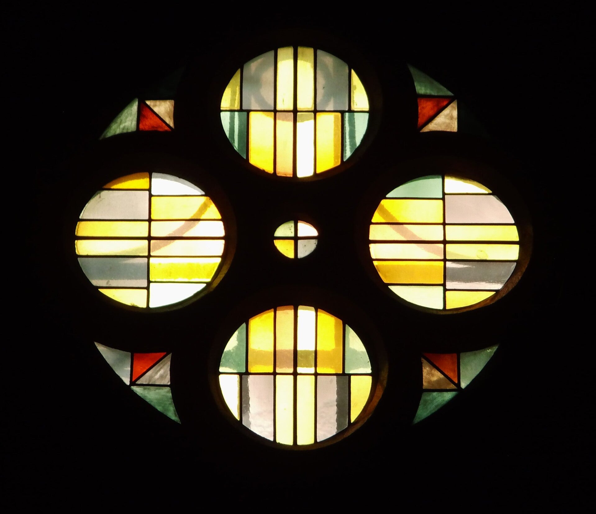 Er is fraai gekleurd, mondgeblazen kathedraalglas verwerkt.