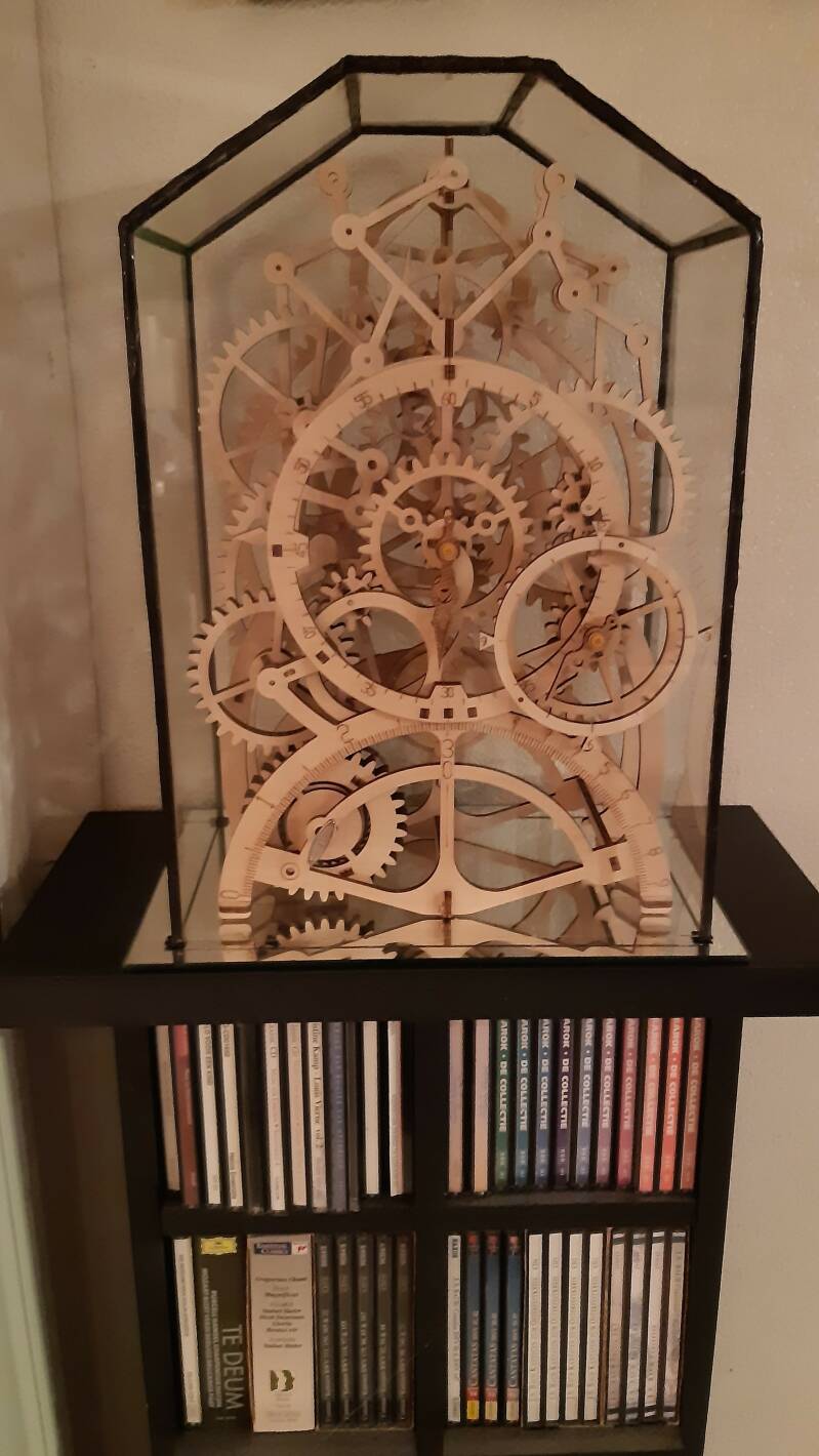 - de constructie van de vitrine nam twee keer zoveel tijd als het in elkaar zetten van de Pendule.