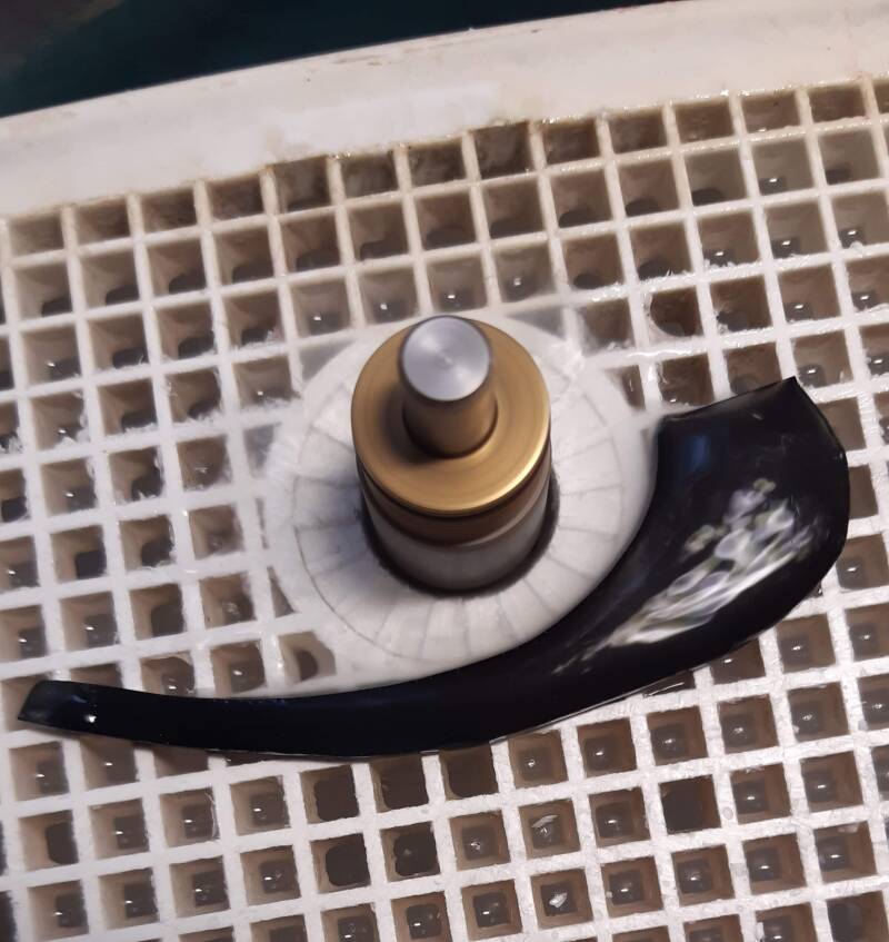 Inmiddels zijn beide zijden gesoldeerd. Het tafereel zit 'op zijn plaats'. Het beoogde effect zal pas optimaal zijn na het patineren: dan zijn de lijnen zwart.