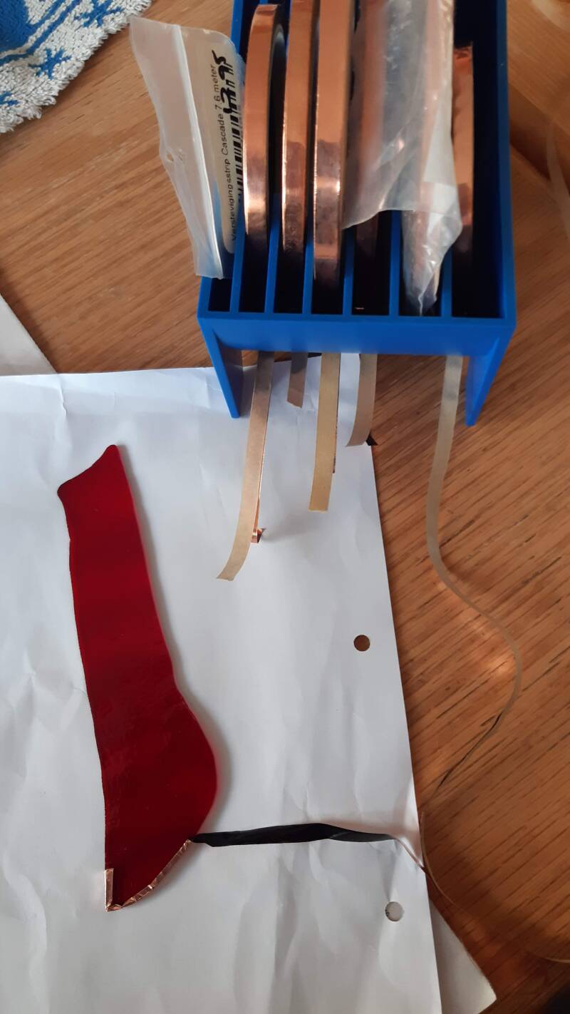 Elk glasdeel moet voorzien worden van een koperfolierand. Op de koperfolie wordt straks de tin gesoldeerd en dan zijn de losse delen verwerkt tot een paneel. Glas varieert in dikte van 2 tot 3,5 mm. Het dikke glas vergt breder tape. Koperfolie is daarom beschikbaar in uiteenlopende breedtes.