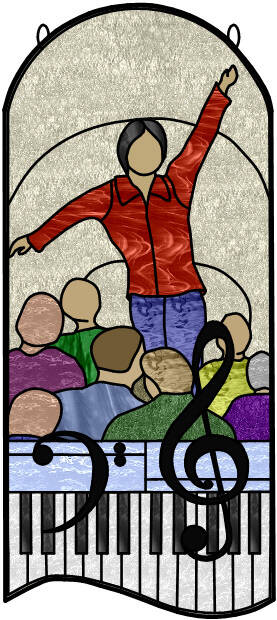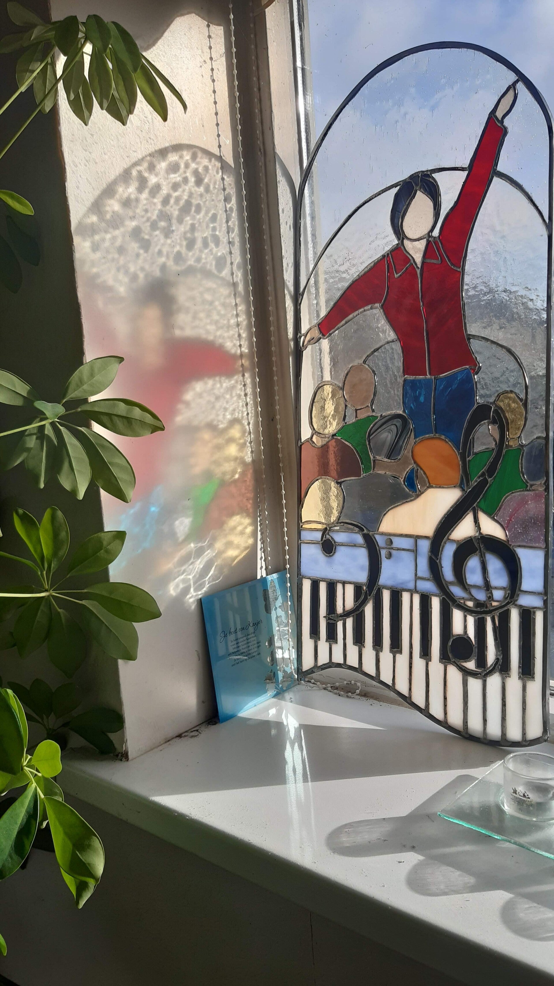 Bij een afscheid hoort een kado. Een origineel kado. Iets van het koor, uit het koor. Voorgesteld is een herinneringsraam te laten maken. Toen kwam Atelier GlassJohs in beeld... Bij het verwerven van de opdracht hielp het wel dat GlassJohs de tenorpartij zingt in het koor.