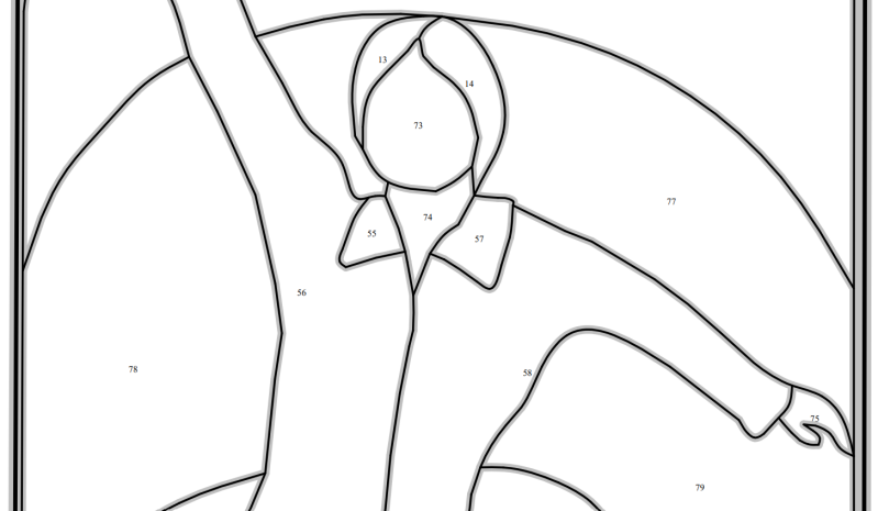 Eén tekening wordt in stukken geknipt, zo ontstaan er sjablonen. Deze gaan op het glas om langs de contouren het glas te snijden. Op de tekening zijn de glasdelen genummerd. De nummers worden overgenomen op het gesneden glas. Zo blijft zichtbaar wat voor- en achterzijde is, en zo komt elk glasdeel op de juiste plaats.