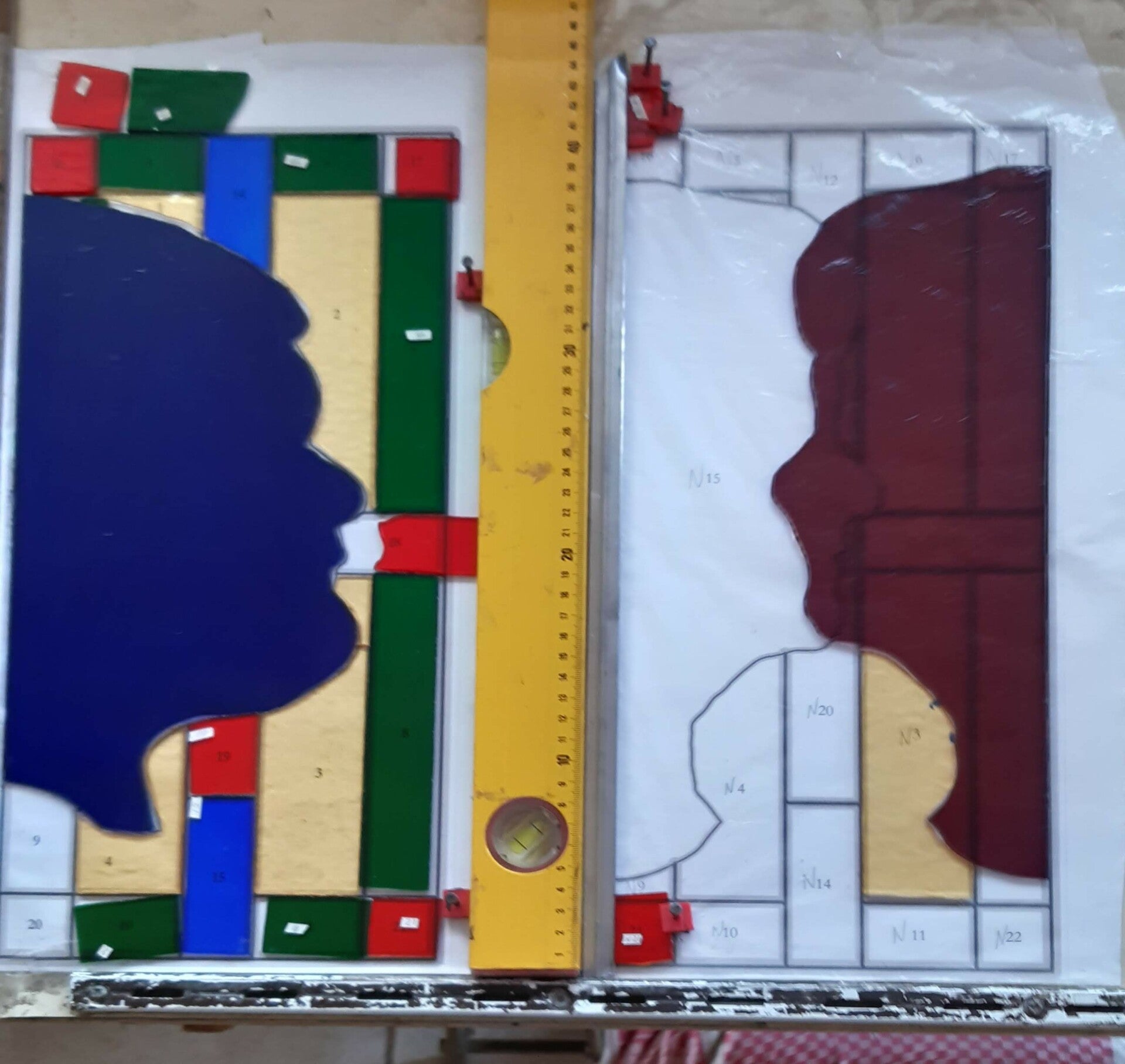 Beide worden in dubbelglas gezet. Het lood voor de randen krijgt derhalve Y-profiel.